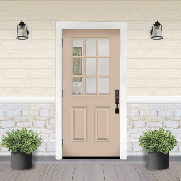 Reliant 32 in. x 80 in. 2P Half Lite 9L SDL Clear Glass RHOS Sandstone Finish Fiberglass Prehung Front Door 4-9/16 Jamb
