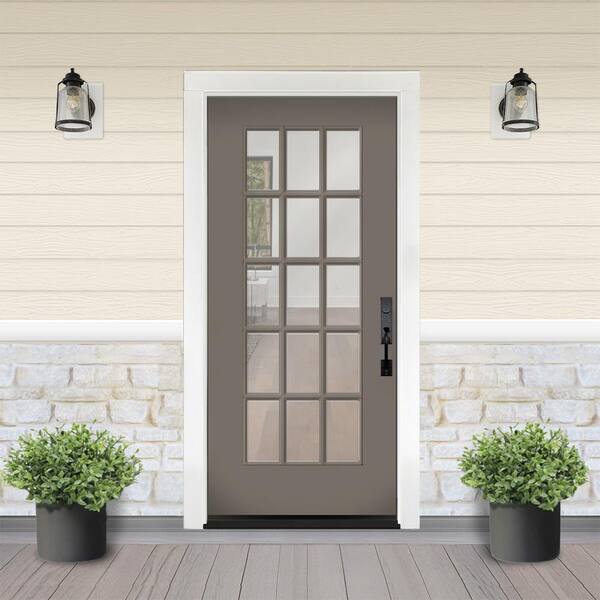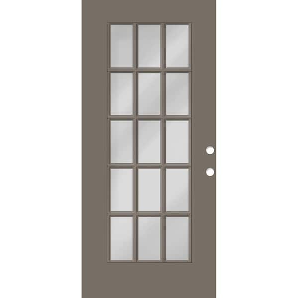 Reliant 32 in. x 80 in. Left-Handed FullLite 15L SDL Clear Glass Kindling Finish Fiberglass Front Door Slab