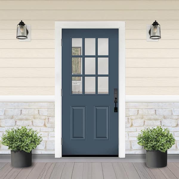 Reliant 36 in. x 80 in. 2P HalfLite 9L SDL Clear Glass RHOS DarkDenim Finish Fiberglass Prehung Front Door w/4-9/16 Jamb