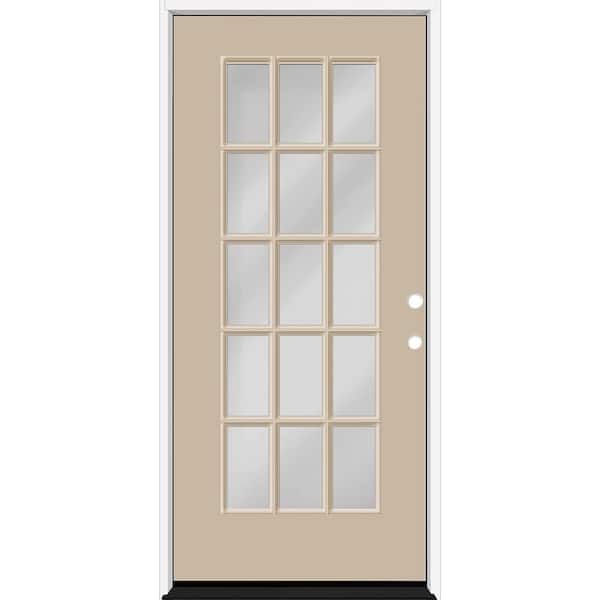 Reliant 36 in. x 80 in. Full Lite 15L SDL Clear Glass LHIS Sandstone Finish Fiberglass Prehung Front Door 4-9/16 Jamb
