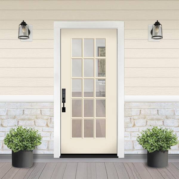 Reliant 36 in. x 80 in. Full Lite 15L SDL Clear Glass RHIS Linen Finish Fiberglass Prehung Front Door 6-9/16 Jamb