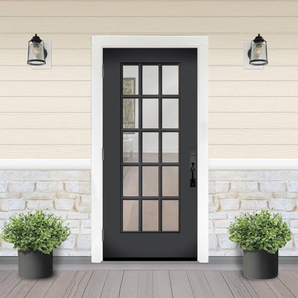 Reliant 36 in. x 80 in. Full Lite 15L SDL Clear Glass RHOS Black Finish Fiberglass Prehung Front Door w/4-9/16 Jamb