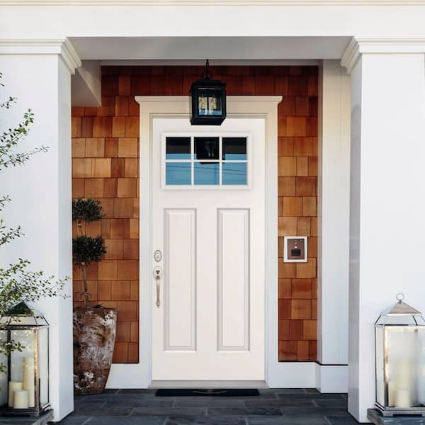 Reliant 36 in. x 80 in. Right-Hand 6-Lite 1/4-Lite Clear Glass White Primed Fiberglass Prehung Front Door