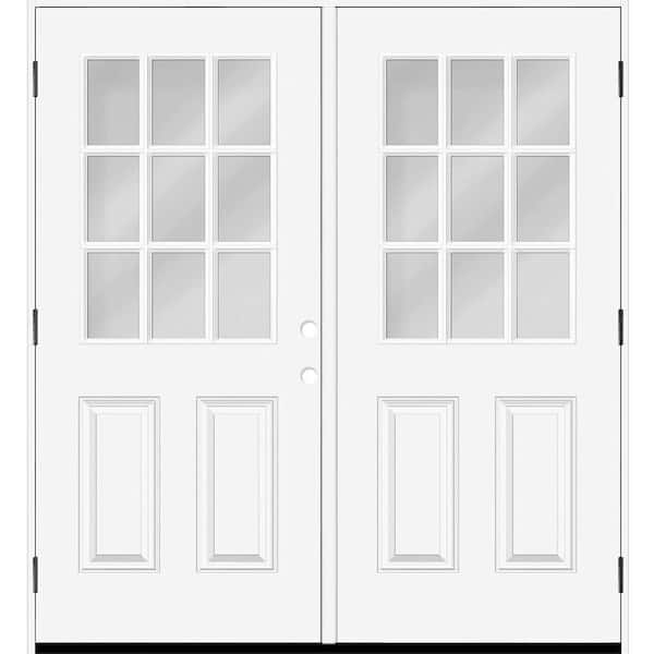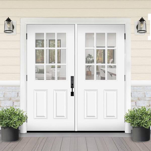 Reliant 64 in. x 80 in. 2P 1/2L 9L-SDL ClearGlass RHOS White Finish Fiberglass Double Prehung Front Door w/ 4 in. Jamb