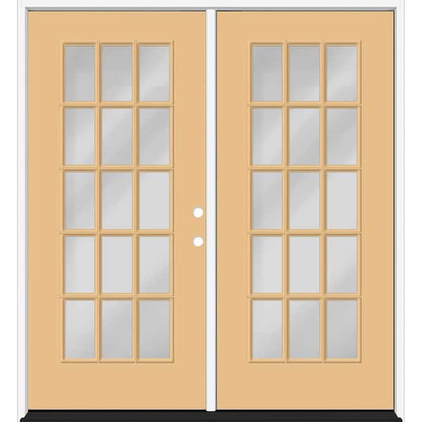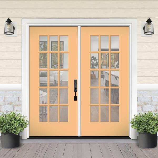 Reliant 64 in. x 80 in. FullLite 15L-SDL Clear Glass LHIS JkFruit Finish Fiberglass Double Prehung Front Door w/4" Jamb