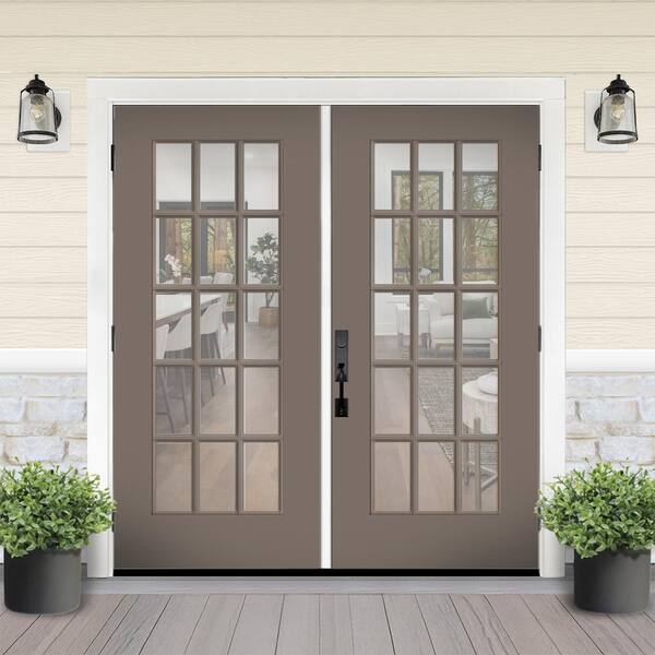 Reliant 64 in. x 80 in. FullLite 15L-SDL Clear Glass LHOS Kindling Finish Fiberglass Double Prehung Front Door w/4" Jamb