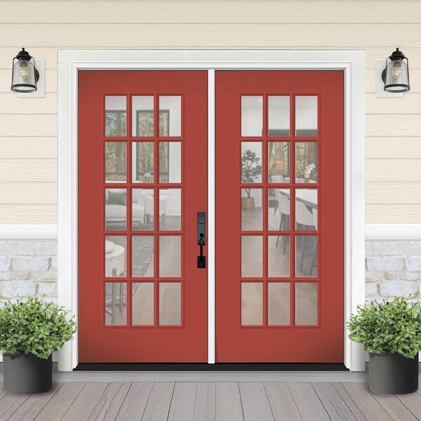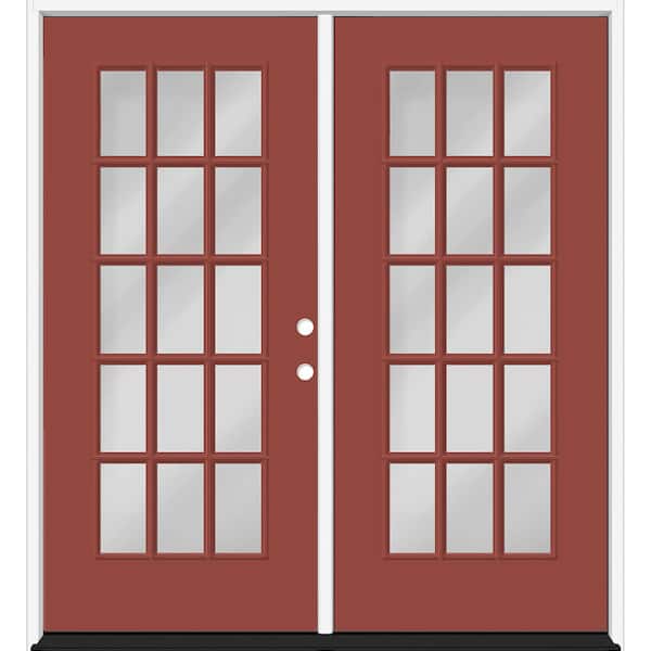 Reliant 64 in. x 80 in. FullLite 15L-SDL ClearGlass LHIS M Red Finish Fiberglass Double Prehung Front Door w/6 in. Jamb