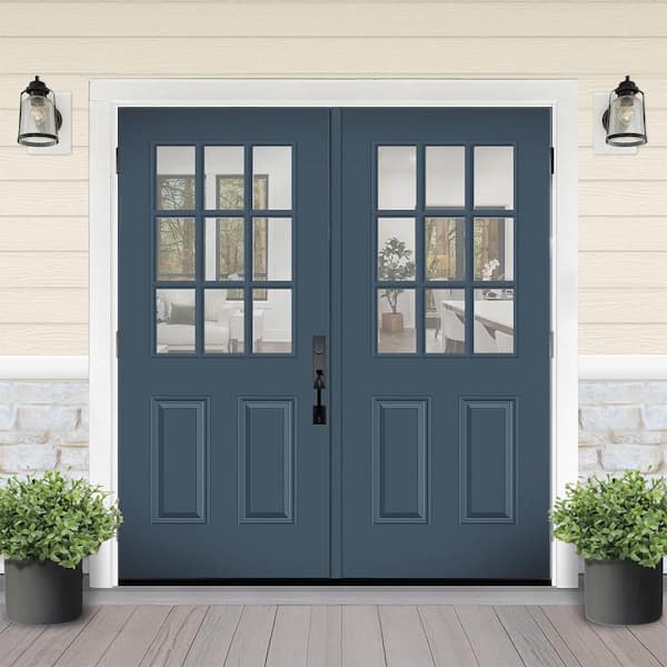 Reliant 72 in. x 80 in. 2P 1/2L 9L-SDL ClearGlass RHOS DarkDenim Finish Fiberglass Double Prehung Front Door w/6in. Jamb