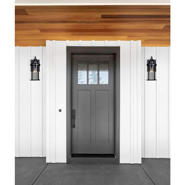 Stewart 12 in. 1-Light Black Outdoor Wall Light Fixture with Mesh Frame and Clear Glass