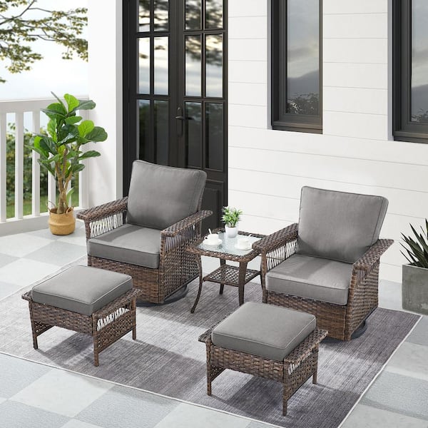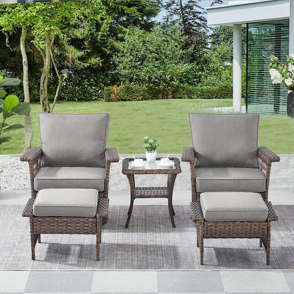 Stlouise Brown 5-Piece Wicker Patio Conversation Set with Gray Cushions