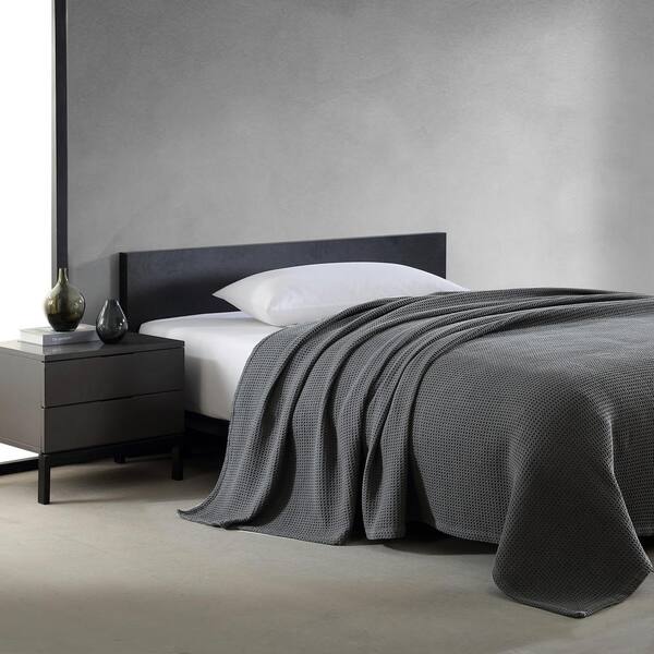 Waffle Weave 1-Piece Soft Charcoal 100% Cotton King Blanket
