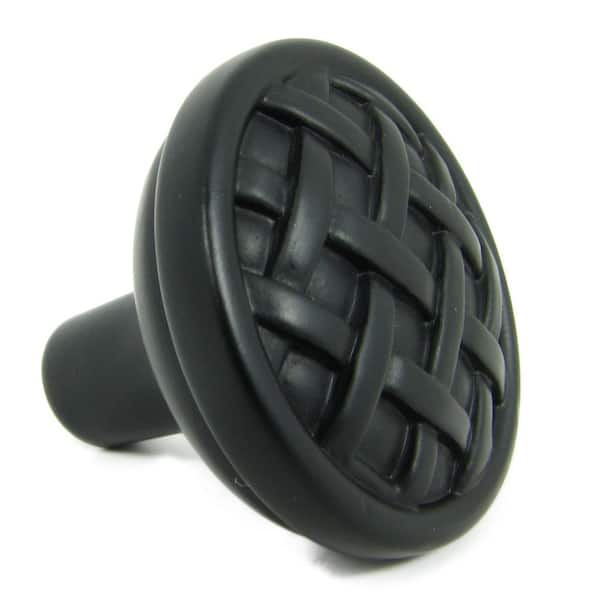 Basket Weave 1-3/8 in. Matte Black Round Cabinet Knob