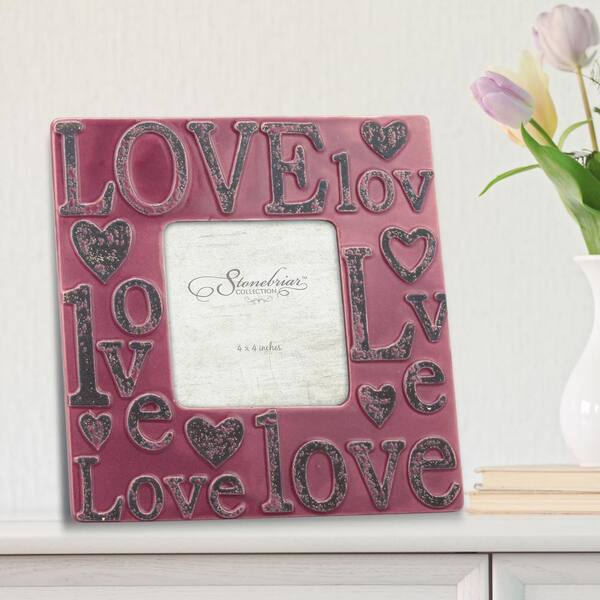 1-Opening 4 in. x 4 in. Worn Marsala Ceramic Love Picture Frame