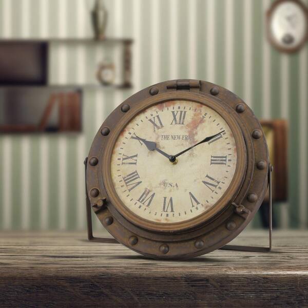 11 in. x 3 in. Rustic Round Tabletop Clock