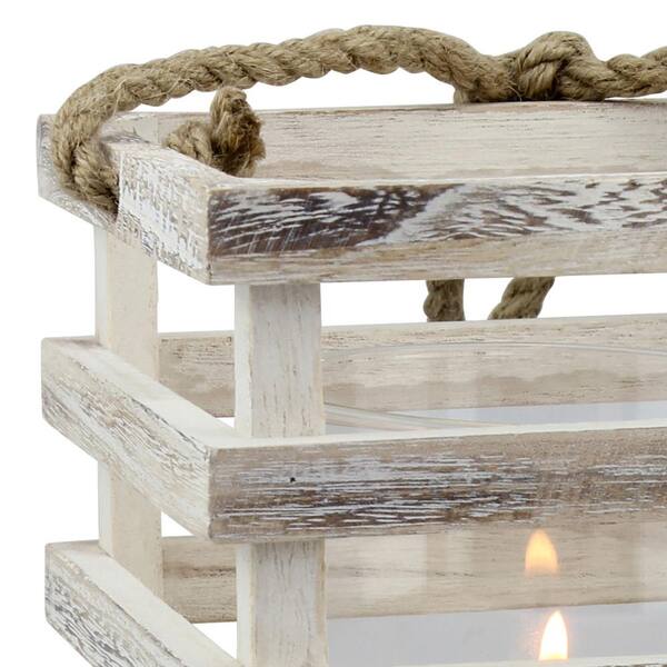 8 in. H x 6 in. D Weathered Wood White Lantern