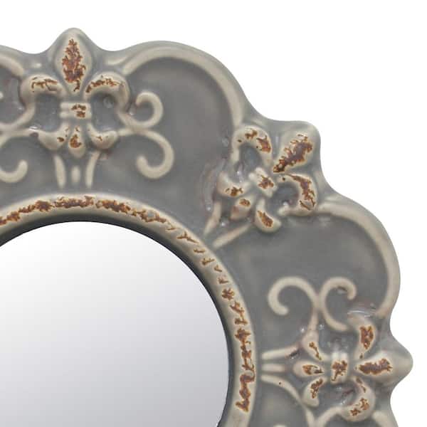 Small Round Gray Casual Mirror (7.874 in. H x 7.874 in. W)