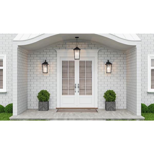 • 19.75 in. H outdoor wall lantern ideal for porch or patio