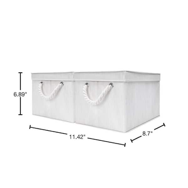 3-Gal. Medium Rectangle Fabric Storage Bin with Lid and Cotton Rope Handles in Ivory (Set of 2)