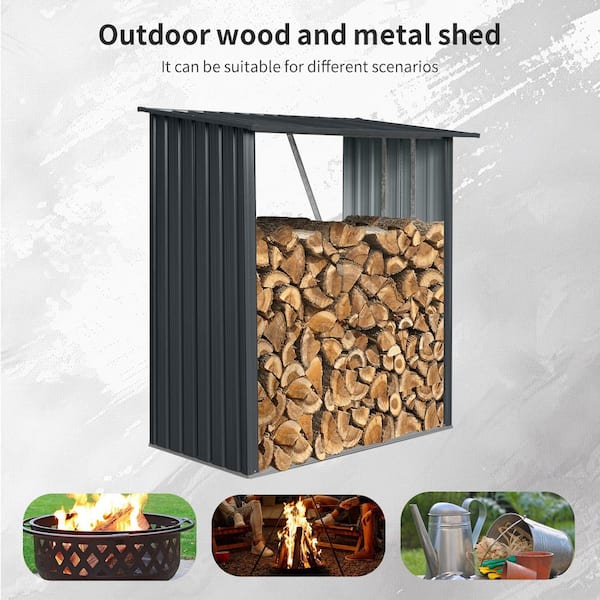 3ft x 5ft Outdoor Meta Firewood Rack, Open Wood Shed For Firewood, Pellet, or Lumber Storage (15 sq. ft.)