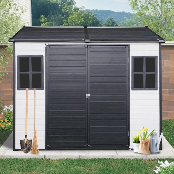 8 ft. W x 6 ft. D Outdoor Resin Shed with Floor Waterproof Storage Shed Tool Shed for Garden, Patio (48 sq. ft. )