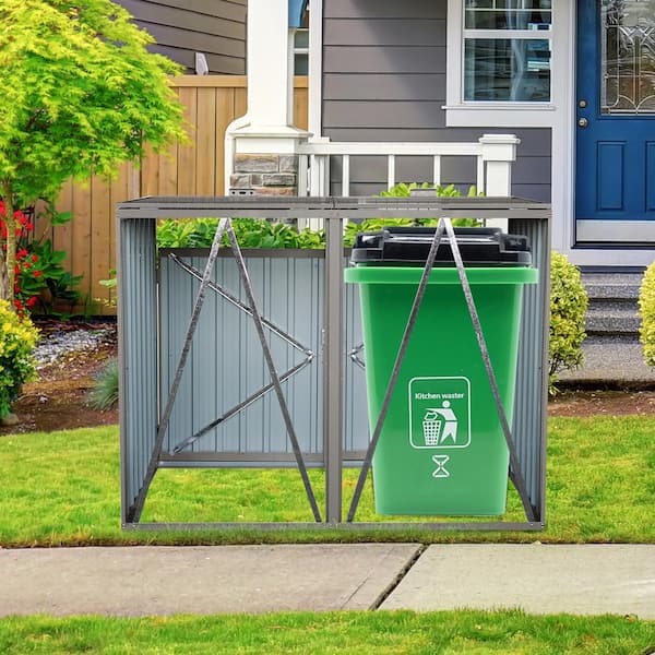 Garbage Bin Shed Metal Outdoor Bin Shed for Garbage Storage, Stores 2-Trash Cans, Bin Shed Grey 13.75 sq. ft.
