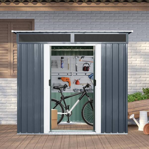 Outdoor Metal Storage Shed with Window and Transparent Plate for Garden, Lawn- Black, White 6 ft. x 5 ft. (30 sq. ft.)