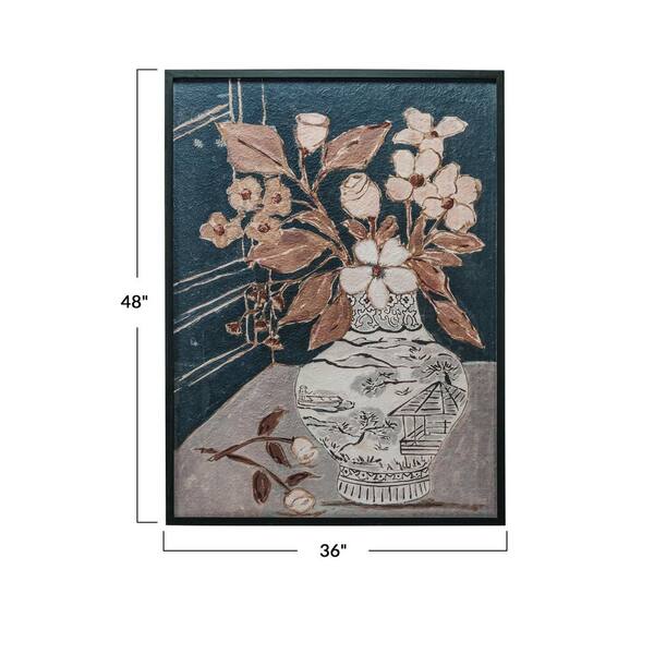 1-Piece Wood Framed Floral Harmony Glass Art Print 48 in. x 36.1 in.