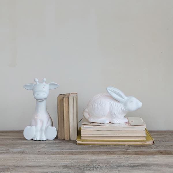 11.8 in. Bisque White Stoneware Giraffe Shaped Table Lamp