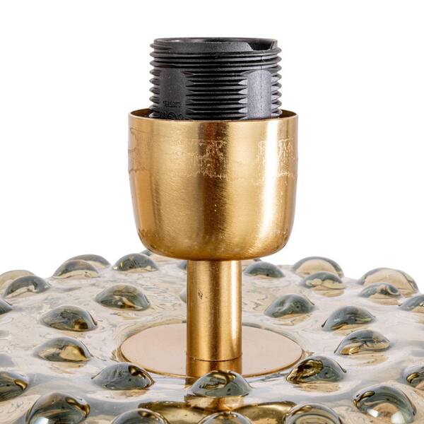 17.5 in. H Metallic Finish and Smoke Color Glass Hobnail Table Lamp with Cotton Shade