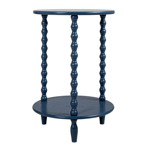 17.8 in. Blue Round Wood End Table with Shelf