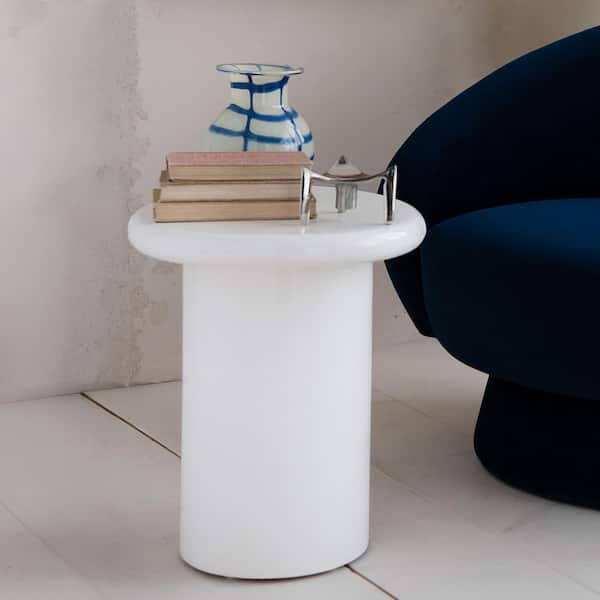 18.9 in. White Round Lacquered Concrete Indoor/Outdoor End Table