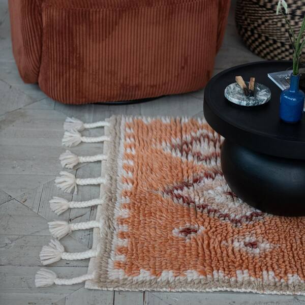 • Sleek black mango wood coffee table with a round design