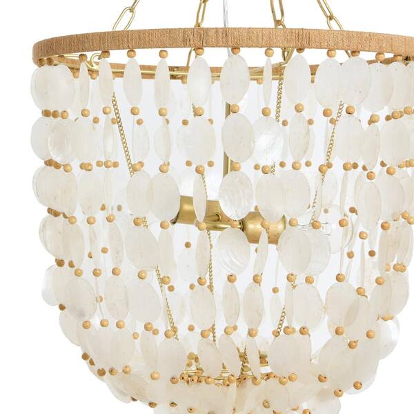 20 in. 1 Ceiling Light Round Capiz and Wood Bead Chandelier Style