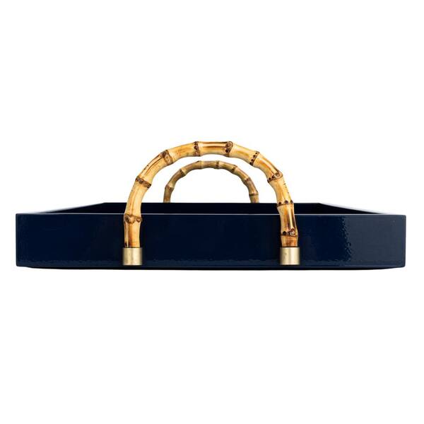 21.5 in. W x 4.6 in. H x 14.5 in. D Rectangle Navy Blue & Gold Finish Wide Wood Serving Tray with Bamboo Handles