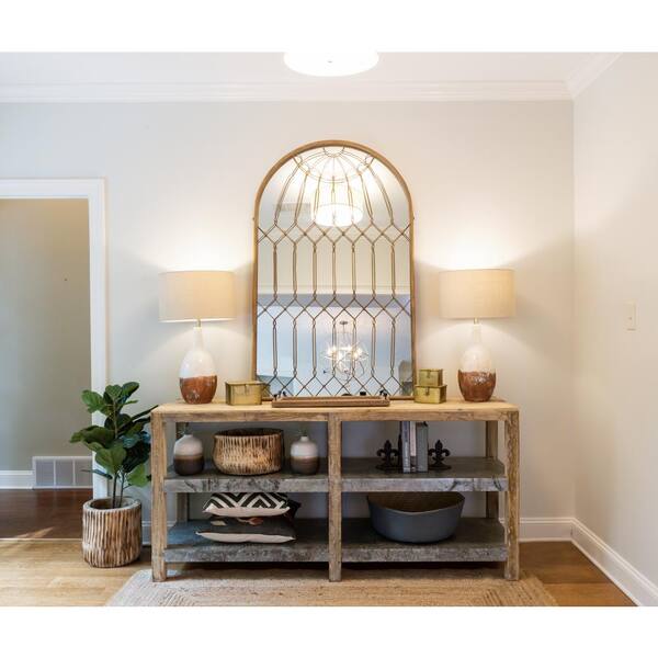 28 in. Multi-Colored Ceramic Table Lamp with Linen Shade
