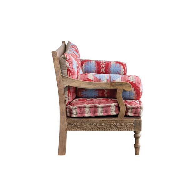 59 in. Square Arm Cotton Kantha Embroidered Rectangle Sofa in Multicolor