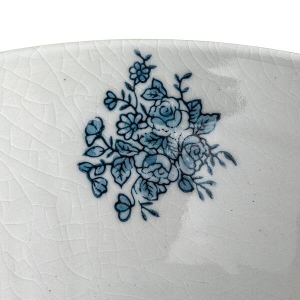 9.5 in. 89.3 fl. oz. Blue and White Hand-Painted Porcelain Floral Pattern Serving Bowl