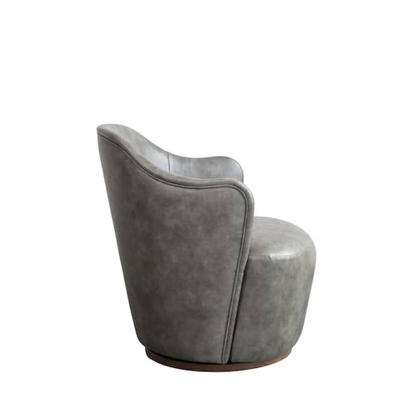 Gray Faux Leather Upholstered Swivel Arm Chair
