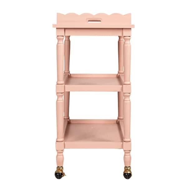 Pink 3-Tier Bar Cart on Casters with Removable Scalloped Tray