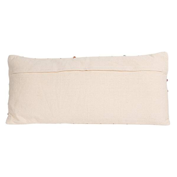 White Cotton Pillow with Multicolor Embroidered Loop Stripes