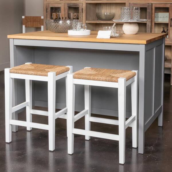 Willowbrook Matte White Solid Wood and Natural Woven Seagrass Rope Counter Stool, Backless