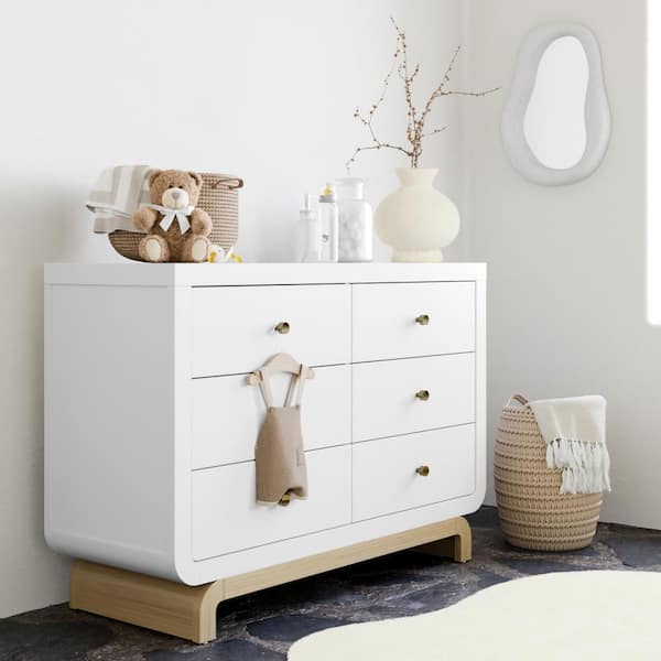 Santorini White with Driftwood 6 Drawer 47.95 in. Wide Dresser