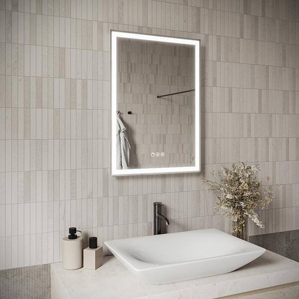20 in. W x 28" H Rectangular Frameless LED Light Anti-Fog Dimmable Color Temperature Change Wall Bathroom Vanity Mirror