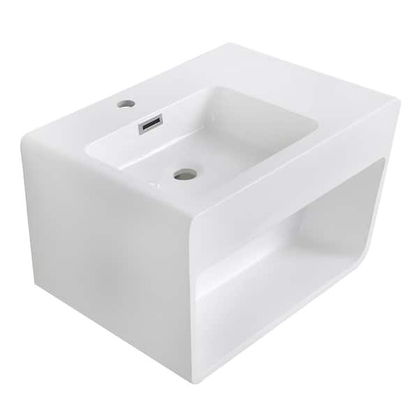 23.6 in. W x 17.7 in. D x 14.1 in. H Vanity in Glossy White with Solid Surface Resin Top in White with White Basin