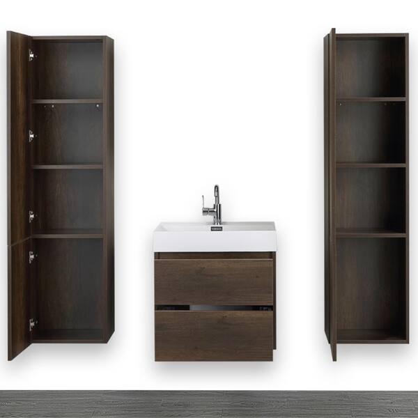 23.6 in. W x 19.3 in. H Bath Vanity in Brown with Resin Vanity Top in White with White Basin