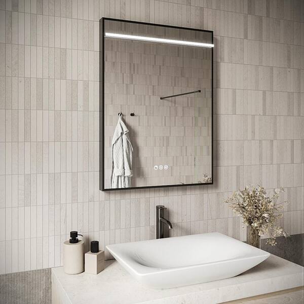 24 in. W x 32 in. H Rectangular Framed LED Light Anti-Fog Dimmable Color Temperature Change Wall Bathroom Vanity Mirror