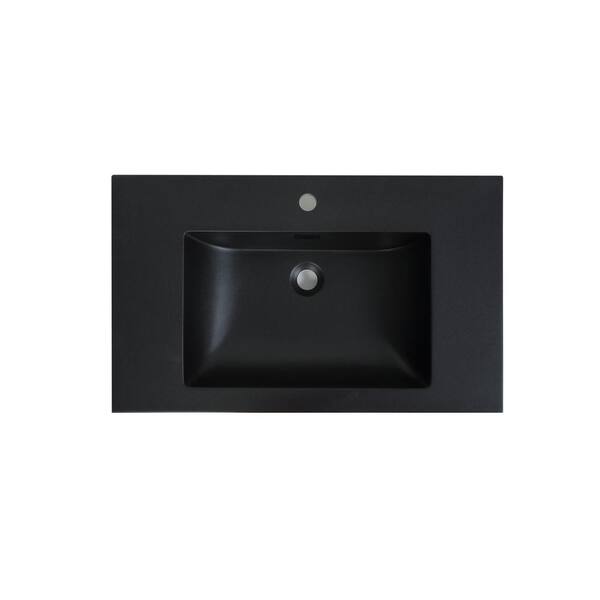 31.5 in. W x 18.9 in. D Solid Surface Resin Vanity Top in Black