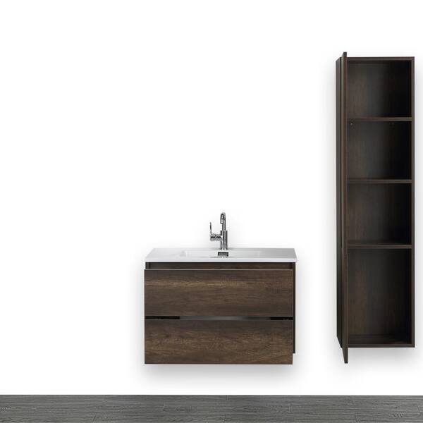 31.5 in. W x 19.3 in. H Bath Vanity in Brown with Resin Vanity Top in White with White Basin