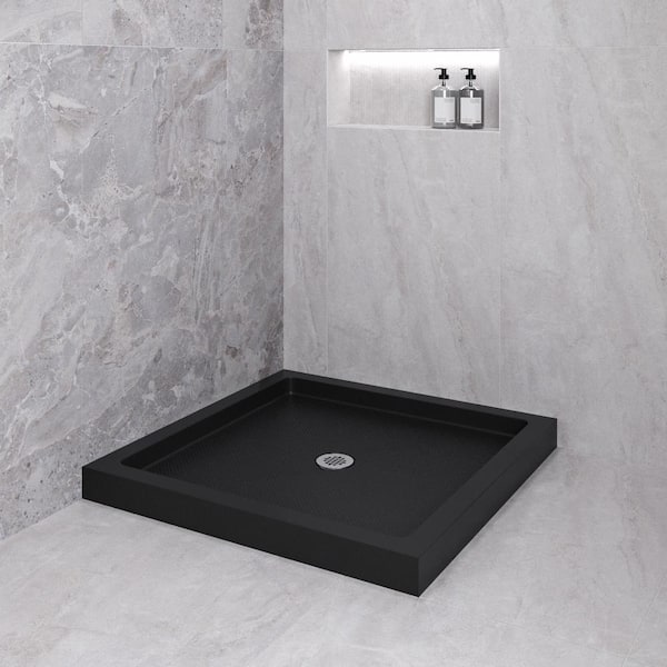 36 in. L x 36 in. W Corner Acrylic Shower Pan Base in Glossy Black with Center Drain, Drain Included