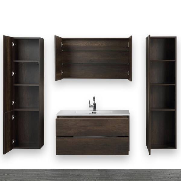 39.4 in. W x 19.3 in. H Bath Vanity in Brown with Resin Vanity Top in White with White Basin and Mirror